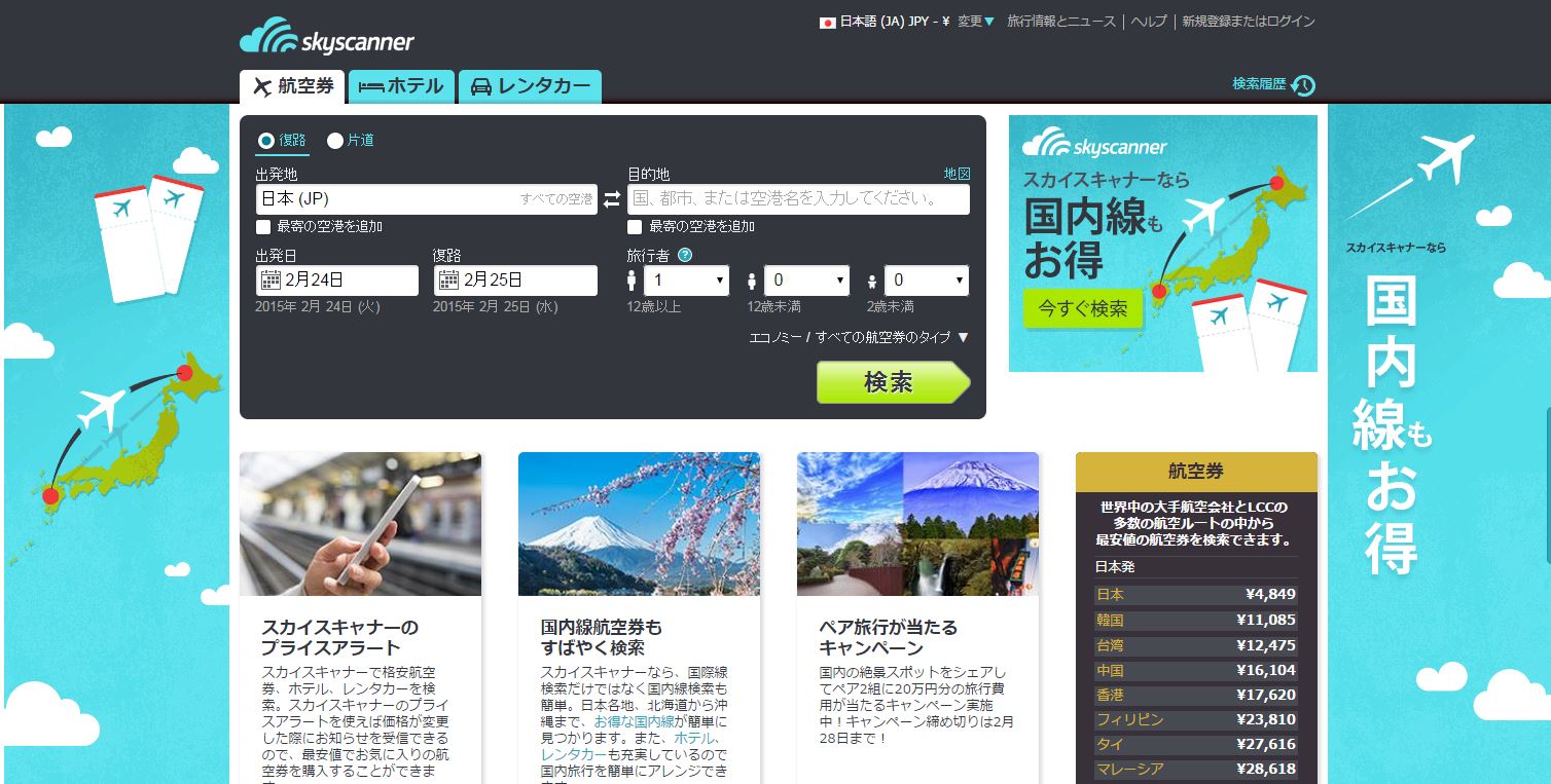 スカイスキャナーは格安航空券を一瞬で比較できるサイトです。