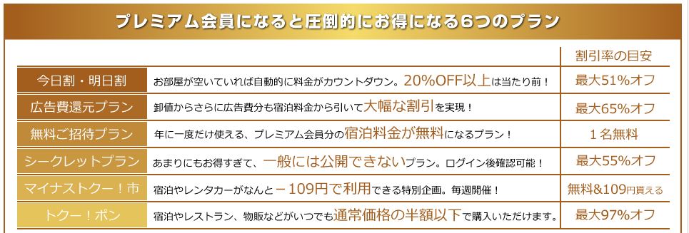 普通に使っても直前割引の情報が沢山ありますが、なんといってもプレミアム会員の特典が凄すぎます。